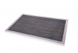Стол изготовлен из прочного оцинкованного металла. Мелкие ячейки — соты — обрамлены жесткой стальной рамой для усиления конструкции.